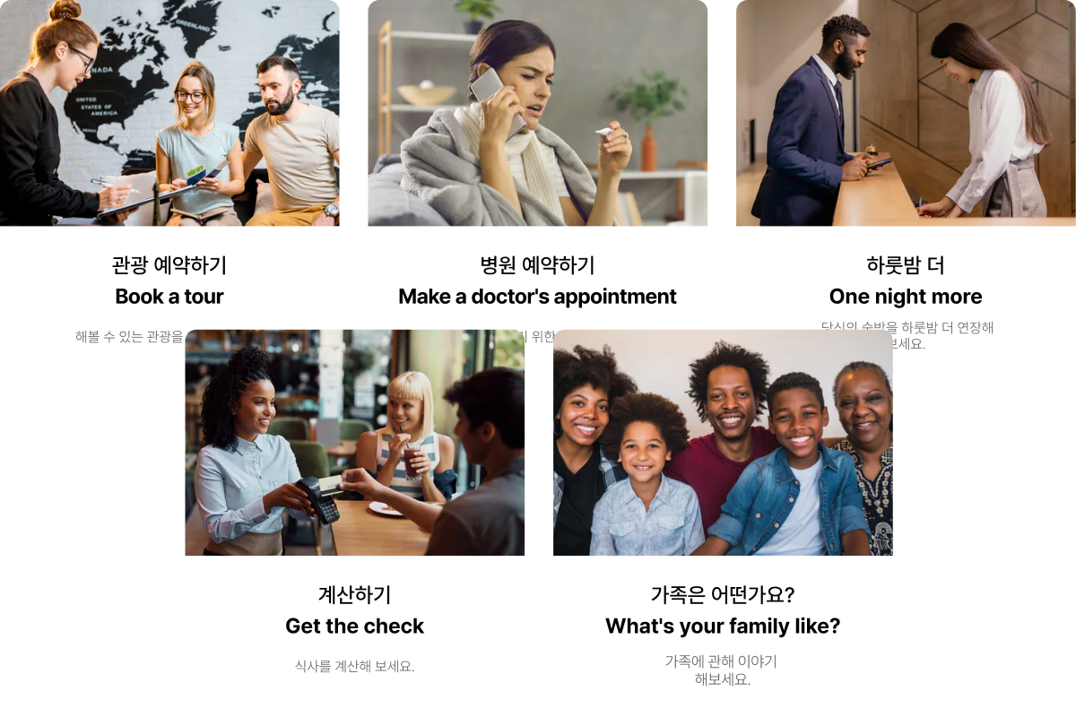 실생활 기반의 다양한 시나리오로 구성된 AI 캐릭터와 무제한 연습할 수 있어 회화 실력 향상과 영어 자신감 증진에 도움이 됩니다.